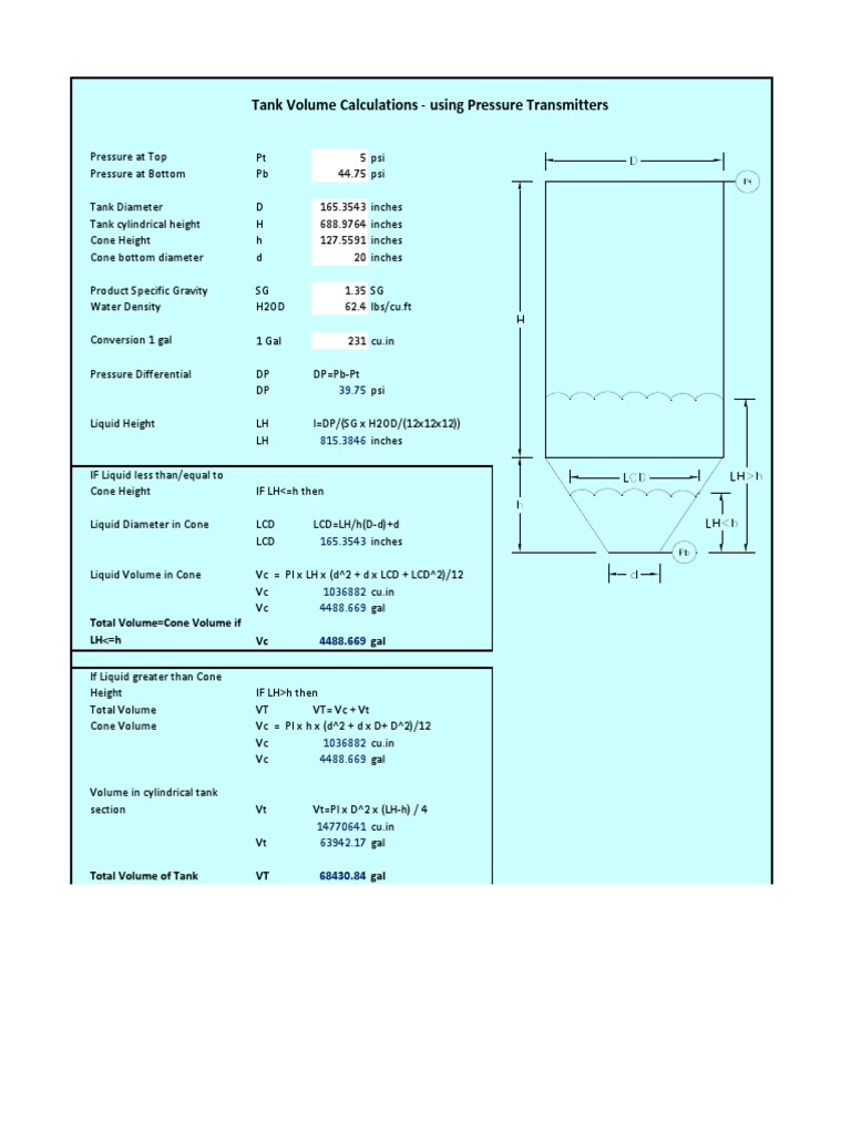 Tank Volume Calculations using Pressure Transmitters Total Volume